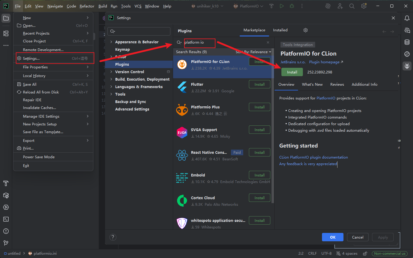 在CLion中安装Platform IO